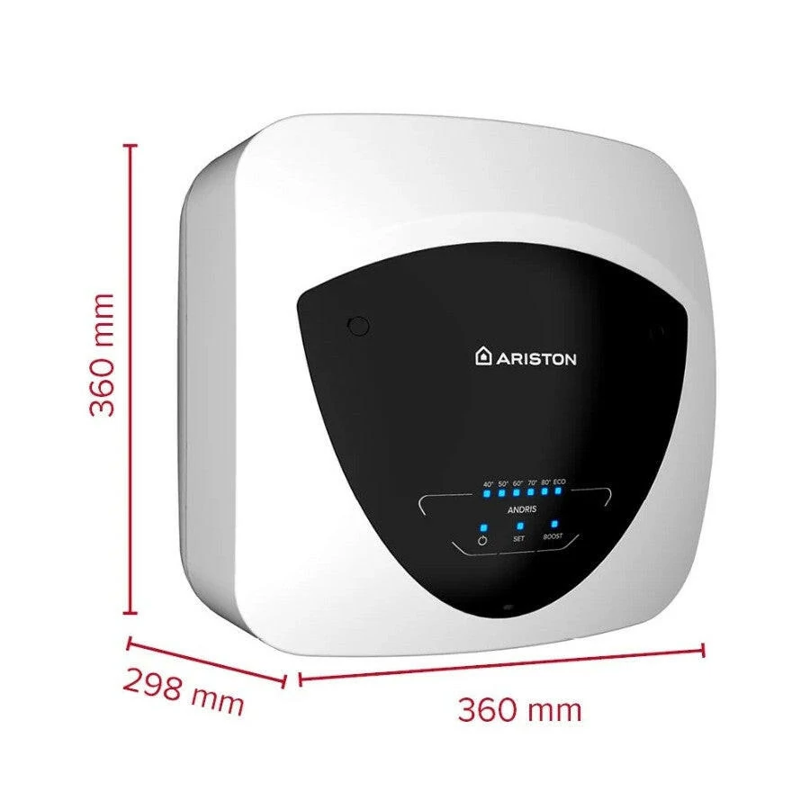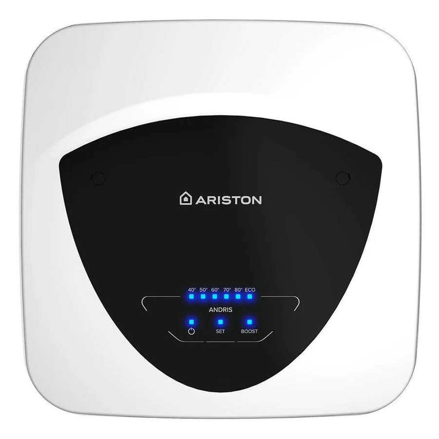 Az Ariston legújabb modellje a kompakt méretű Andris Elite vízmelegítők, melyek a LED kijelzőnek és a puha érintőképernyős gomboknak köszönhetően rendkívül könnyen kezelhetőek. Eco Evo funkciója elemzi az Ön fogyasztási szokásait és ennek megfelelően történik a vízmelegítés, így akár 15% energiát is megtakaríthat. A Boost funkció kifejezetten hasznos, ha váratlanul melegvízre van szükségünk, hiszen a vízhőmérsékletet a maximumra emeli, hogy a lehető legnagyobb mennyiségű melegvíz álljon rendelkezésre. Ha az Eco Evo funkcióval egyidejűleg aktiválódik, abban az esetben az Eco Evo leállítja a tanulást/működést, amíg a Boost funkció fut. Amint a vízhőmérséklet eléri a 80 °C-ot, a funkció kikapcsolja magát. LED kijelzőjének köszönhetően könnyedén leolvasható a beállított vízhőmérséklet. A beállított hőmérséklet eléréséig villognak a LED-ek. A vízmelegítő korrózió elleni védelméről a réz fűtőszálak gondoskodnak, valamint növelik a felmelegített víz tisztaságát is. Számos biztonsági funkcióval rendelkezik, mint például túlmelegedés-, fagyás- és Legionella elleni védelem, illetve száraz fűtéses autodiagnosztikai védelem.