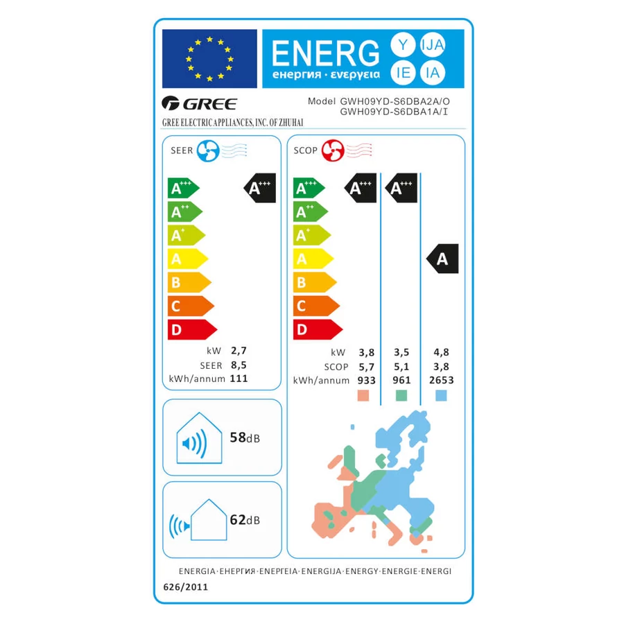 Gree Amber Royal mono split klíma szett - Energiacímke